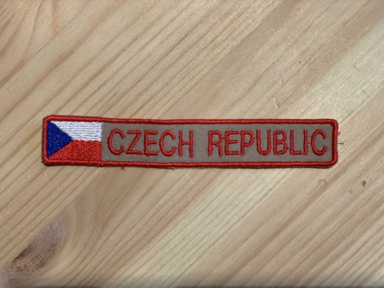 Podklad v barvě košile, text a lemování v červené barvě. K15